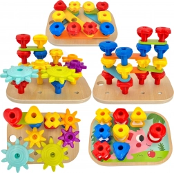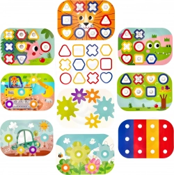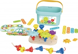 Con questo box, i bambini possono divertirsi con 12 diverse attività in un unico pacchetto compatto - dal costruire modelli, apprendere forme e colori, fino alla costruzione di strutture 3D. Tutte le parti possono essere facilmente riposte all'interno, facilitando la portabilità compatta e l'organizzazione. Questo prodotto è realizzato in legno naturale e ha bordi arrotondati per la massima sicurezza.