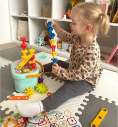 Questo box offre 12 funzioni diverse per lo sviluppo delle abilità, dall'apprendimento dei colori e delle forme alla costruzione di strutture 3D.