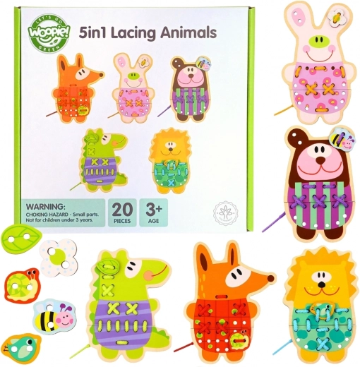 Entra nel mondo del divertimento creativo con gli animali in legno da legare 5 in 1 del marchio Woopie Green. Questo set educativo è ideale per le piccole mani e grandi fantasie. Realizzato in legno di alta qualità e dipinto con colori atossici, garantisce la sicurezza e lo sviluppo sano del bambino.