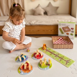 Il gioco favorisce lo sviluppo precoce e insegna ai bambini a collaborare invece di competere. Grazie a regole semplici e a componenti in legno robusti, è apprezzato da piccoli giocatori dai 18 mesi, ma diverte anche fratelli maggiori e genitori.