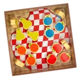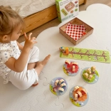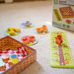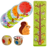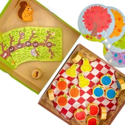 Il gioco di famiglia SCOIATTOLO NEL FRUTTETO di WOOPIE GREEN è il primo gioco da tavolo ideale per i più piccoli. I bambini tirano insieme il dado, raccolgono la frutta colorata in legno dall’albero e la mettono nel cestino. Quando esce lo scoiattolo, uno dei frutti raccolti torna indietro: tensione e gioia della vittoria sono garantite.