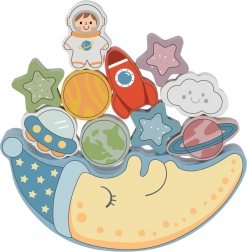 I bambini possono impilare blocchi spaziali sulla luna dormiente e sviluppare precisione e pazienza.