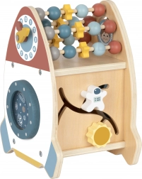 Il razzo in legno è un giocattolo multifunzionale che offre sei diverse attività per lo sviluppo delle abilità dei bambini: