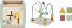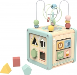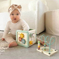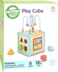 Il cubo attivo in legno WOOPIE GREEN nei delicati colori pastello combina divertimento e apprendimento in un unico gioco. Offre un labirinto con perline, un selezionatore di forme, blocchi girevoli con animali, ingranaggi e elementi scorrevoli per sviluppare motricità fine, logica e coordinazione. La realizzazione sicura con spigoli arrotondati e legno di qualità è la scelta ideale per bambini dai 18 mesi ed è anche un ottimo regalo.