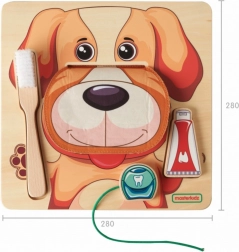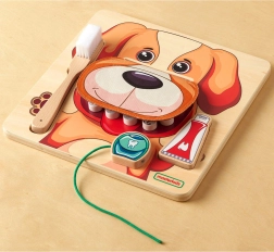 Presentate ai bambini abitudini sane in modo divertente. La tavoletta a tema cagnolino ha una bocca apribile e 10 denti riprodotti in modo realistico, che i piccoli dentisti possono pulire con gli accessori inclusi. Attraverso il gioco di ruolo i bambini acquisiscono naturalmente le corrette tecniche di spazzolamento e memorizzano più facilmente la routine quotidiana. Nel rispetto dell’approccio Montessori, l’attività favorisce autonomia, concentrazione e apprendimento naturale attraverso il gioco.