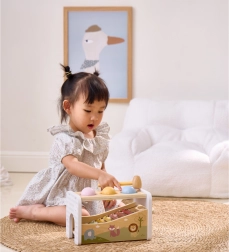Legno laccato con colori atossici e bordi lisci, ideale per i più piccoli e per il gioco quotidiano.