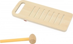 La struttura robusta in legno con colori atossici è sicura per i più piccoli. Il giocattolo sviluppa naturalmente la motricità fine, la coordinazione occhio–mano, la percezione musicale e la creatività, garantendo ore di divertimento.