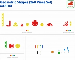 Questo set completo include quadrati, triangoli, cerchi, semicerchi e listelli piatti in vari colori, che grazie ai fori si fissano facilmente con le viti ai pannelli, ai tavoli o ai carrelli Masterkidz. I bambini possono creare motivi, fiori e costruzioni più complesse, allenando pianificazione, scelta degli elementi e cura dei dettagli.