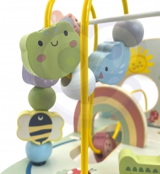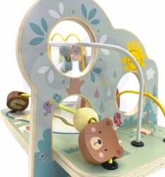Il labirinto di perline a tema foresta, in massello di legno, colpisce per la lavorazione di qualità, i colori pastello e le simpatiche illustrazioni di animaletti, arcobaleno e sole. I bambini spostano perline e forme lungo tre percorsi sinuosi, allenando la precisione dei movimenti delle dita e la concentrazione, e provano gioia nel completare il tracciato.