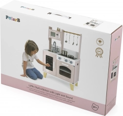 La cucina in legno VIGA PolarB, nelle delicate tonalità “polari”, è progettata per un gioco sicuro e fantasioso. I bambini possono “cucinare”, “cuocere” e “lavare i piatti”, annotare il menu sulla lavagna del frigorifero e scoprire la gioia della cucina condivisa. Il legno di qualità con vernici atossiche garantisce lunga durata e sicurezza.