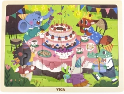 Scoprite il puzzle in legno di alta qualità VIGA con tema festa di compleanno. Il puzzle con 24 pezzi è riposto su una base in legno con immagine guida e ogni pezzo è numerato da 1 a 24, il che facilita l’assemblaggio e sostiene l’apprendimento dei numeri. Adatto da 24 mesi, dipinto con colori atossici.