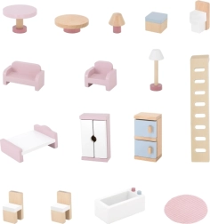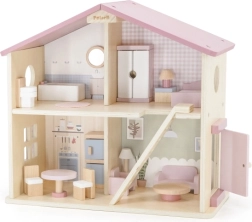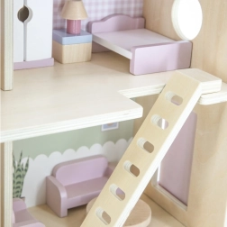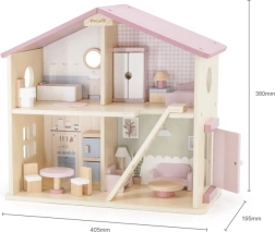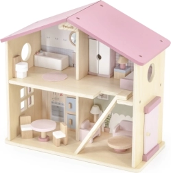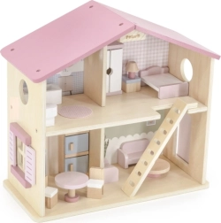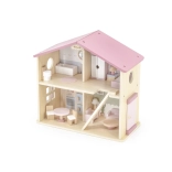 L'elegante casetta di legno per bambole del marchio Viga PolarB farà felici i bambini a partire da 3 anni. Offre 2 piani separati da una scala, è completamente arredata ed è realizzata in legno di alta qualità con delicate tonalità pastello. Ideale per bambole fino a 10 cm e per sviluppare fantasia e abilità sociali.