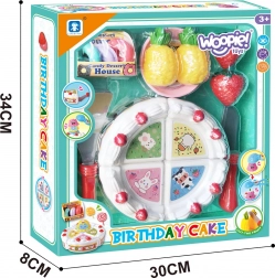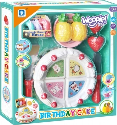 Il grazioso set di compleanno del marchio Woopie trasforma ogni tè pomeridiano dei bambini in una festa indimenticabile. La torta di plastica da tagliare, splendidamente decorata, si divide facilmente in porzioni e, grazie agli accessori come coltellino, spatola e piattino, i bambini possono esercitarsi a servire come veri padroni di casa.