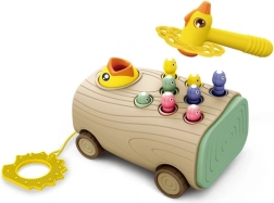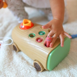 Questo giocattolo interattivo cresce con il bambino: dai primi passi come carrellino da trascinare dal movimento fluido, al martellare i vermicelli con un martelletto sicuro, fino alla pesca magnetica dei pezzi nascosti con un uccellino dotato di magnete. Stimola concentrazione, pazienza e lo sviluppo della percezione sensoriale.