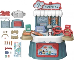 Contenuto del set: termometro, stetoscopio, specchietto, martelletto riflessi, otoscopio, occhiali, “medicine”/fiale, sfigmomanometro, cerotti e altri accessori.