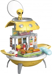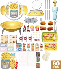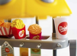 I bambini possono imitare giocando la vendita in un fast food. Il set include giocattoli come burger, patatine, bevande e molto altro.