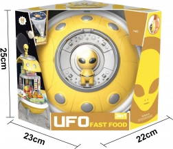 UFO Fast Food è un giocattolo tre-in-uno che affascina piccoli esploratori e bambini creativi. Il proiettore permette ai bambini di imparare i nomi dei pianeti e ampliare le loro conoscenze sull’universo. Questo innovativo zaino con alieno è pronto a essere portato nel mondo di infinite avventure. Inoltre, il design pieghevole consente la trasformazione in una giocosa fast food restaurant, dove i bambini possono creare un’infinità di giochi interattivi.