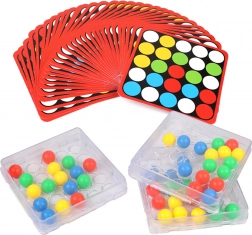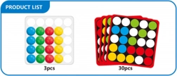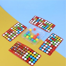 Il gioco Dita veloci arriva con una base unica con fori circolari che permettono il movimento delle palline colorate usando solo le dita. Ogni carta ha sul retro un modello universale in bianco e nero che i bambini possono colorare a piacere per creare il proprio mosaico.