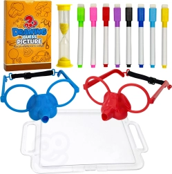 Immagina di disegnare solo con il naso! Con il fantastico gioco Disegna e Indovina l'Immagine del marchio Woopie sarà possibile. Indossa occhiali speciali con pennarello e disegna sulla lavagna un'immagine estratta a caso, per aiutare la tua squadra a indovinare le parole. Il tempo vola, quindi affrettati, la clessidra sta già ticchettando!