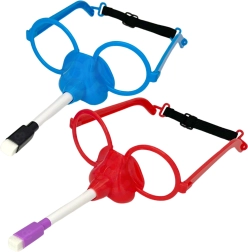 - Occhiali con spazio per penna e cinturini per regolare la misura.