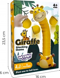 Mettiti alla prova costruendo la torre più alta possibile con i pezzi colorati, senza far cadere la giraffa.