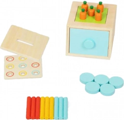 Scatola educativa Montessori Tooky Toy è progettata per suscitare nei bambini interesse per il mondo che li circonda. Questo set include vari giocattoli interattivi che supportano le abilità motorie fini e le capacità cognitive: