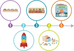 Set in legno progettato per supportare lo sviluppo cognitivo e le capacità motorie fini per bambini dai 16 mesi.