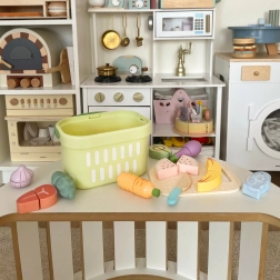 Il set di alimenti di legno da tagliare non solo sviluppa l’immaginazione dei bambini, ma favorisce anche le abilità manuali. Utilizzando questo set, i bambini possono trasformarsi in piccoli cuochi, stimolando creatività e competenze sociali attraverso il gioco di ruolo in varie situazioni di cucina. Il gioco del taglio e della preparazione dei cibi aiuta i bambini a imparare l’educazione alimentare e a conoscere i diversi tipi di alimenti.