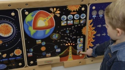 Grazie agli elementi mobili ed effetti di luce, i bambini possono facilmente imparare sulla struttura esterna ed interna della Terra.