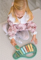 Gli strumenti sono realizzati in legno laccato e colorati con vernici atossiche. Le forme ergonomiche si adattano facilmente alle manine e favoriscono motricità fine, senso del ritmo ed espressione musicale. Ideale per il divertimento in famiglia e per le prime lezioni di musica a casa.
