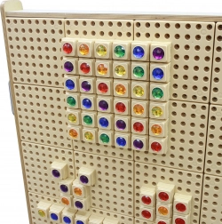 La fitta rete di fori consente un fissaggio sicuro di pioli, viti, ingranaggi, tubi e altri elementi per creare pattern e soluzioni meccaniche.