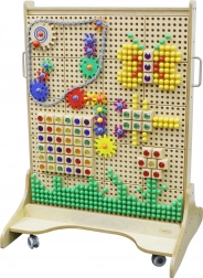 Questa lavagna STEM in legno offre ai bambini ampio spazio per creare pattern, costruire piste per biglie, ingranaggi e altre strutture. Il design a doppia faccia stimola il gioco di gruppo e la collaborazione, mentre la solida struttura in legno di qualità garantisce una lunga durata.
