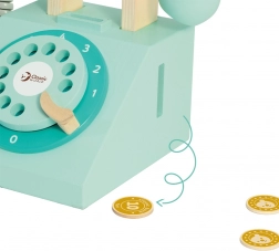 Questo telefono in legno in stile classico offre ai bambini un’esperienza di gioco autentica. Grazie al quadrante girevole, alla cornetta con cordino e al gioco d’inserimento delle monete, i bambini imparano a sostenere una conversazione, sviluppano abilità sociali ed esercitano la coordinazione mano-occhio. Senza batterie – si sente un piacevole campanello meccanico.