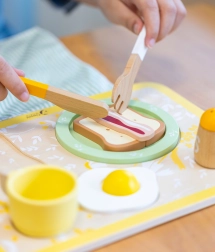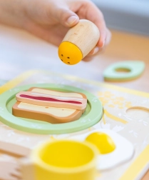 Lasciate che i vostri bambini si immergano in un divertimento caldo e creativo con il set colazione in legno di Classic World. Questo set non solo offre molte possibilità di gioco, ma aiuta anche i bambini a sviluppare abilità sociali e buone abitudini a tavola. Ideale dai 3 anni in su, il set include piatto, posate, tazza, sale, pepe, uovo, fette di pane tostato, una fetta di pancetta, tovagliolo e vassoio da portata.