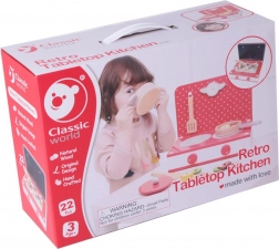 La cucina in legno Classic World offre ai bambini uno spazio per gioco fantastico. Questo set 2 in 1 permette a più bambini di cucinare su due piani di lavoro funzionali. Adatto ai bambini dai 3 anni, la cucina può essere configurata secondo le loro idee. Il set include: