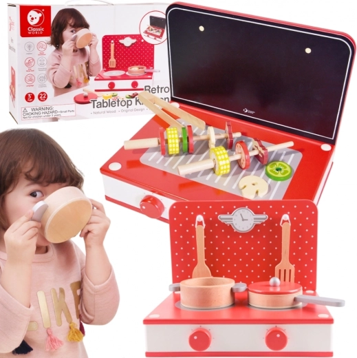 Il set da cucina in legno supporta il gioco creativo e sviluppa le abilità motorie nei bambini.