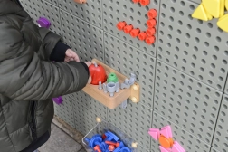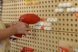 I bambini possono avvitare, montare e creare diversi schemi e disegni sulla lavagna STEM.