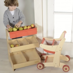 Con questo giocattolo interattivo, i bambini impareranno i principi di base del commercio, inclusi il controllo della freschezza dei prodotti e il pagamento alla cassa. Il giocattolo è realizzato in legno di alta qualità, ecologico e contribuisce alla riduzione dei rifiuti plastici.