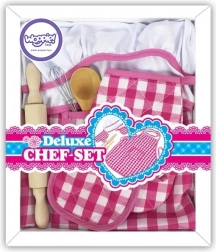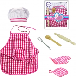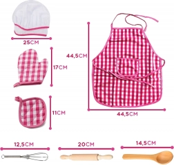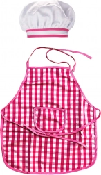 Il grembiule e il cappello con motivo a quadri rosa-bianco sono gli elementi principali che garantiscono un'esperienza di gioco stilosa e funzionale per i bambini.