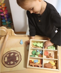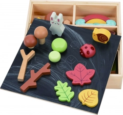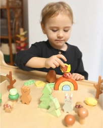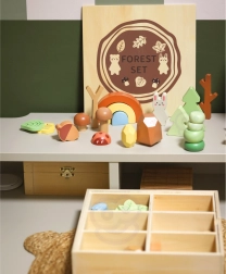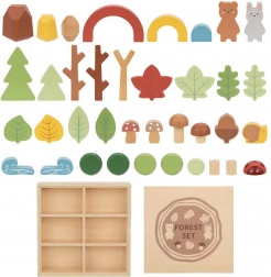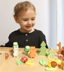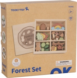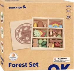 Set forestale di legno di Tooky Toy progettato per l'intrattenimento creativo dei bambini. Include vari elementi forestali che consentono classificazione, impilamento e costruzione, favorendo la creazione di un ambiente forestale unico.