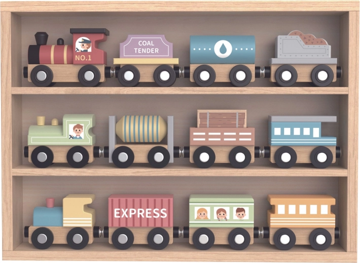Dopo il gioco, i trenini e i vagoni possono essere riposti nella scatola di legno di qualità inclusa nella confezione, garantendo un'ordinamento e uno stoccaggio facile.