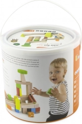 La confezione comprende un pratico secchiello con manico per riporre e trasportare comodamente. I pezzi sono realizzati in legno verniciato di qualità e colorati con vernici atossiche in tonalità accese. Il gioco sviluppa la motricità fine, la visione/spazialità, il pensiero logico e sostiene la creatività.