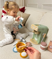 Il set del marchio Woopie Green è la scelta ideale per i bambini che sognano di diventare piccoli baristi. Grazie ai 25 elementi, comprendenti macchina da caffè, tazze, capsule e latte, i bambini possono imitare gli adulti e sviluppare le loro abilità giocando al caffè. Questo set è realizzato in legno naturale e vernici sicure per i bambini, assicurando un aspetto realistico e un gioco sicuro.