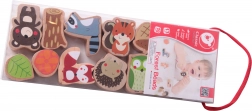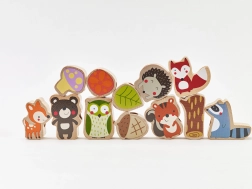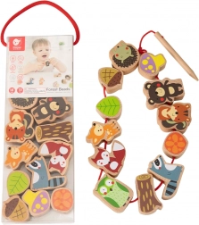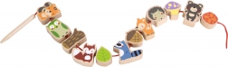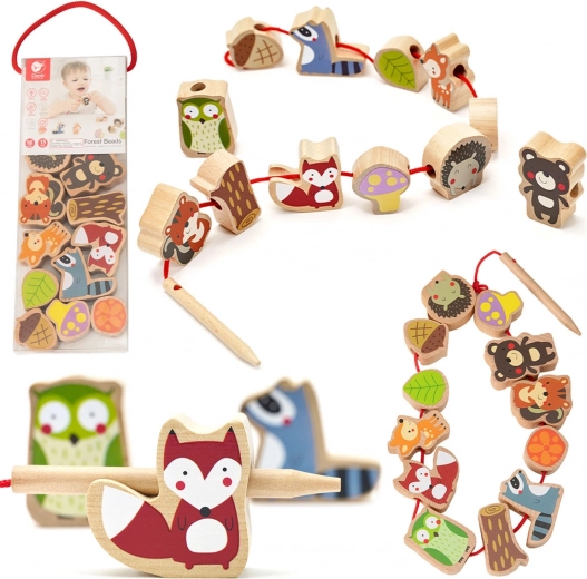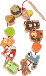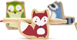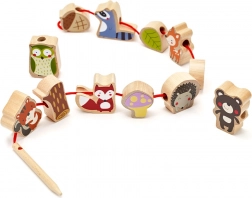 Il set include 12 perline di legno e un cordino con ago di legno. I pezzi possono essere infilati in qualsiasi ordine – il bambino così esercita colori, forme e la denominazione degli animali e al contempo crea le proprie storie del bosco. Scelta ideale per un divertimento tranquillo e significativo a casa e in viaggio.
