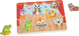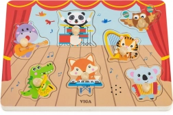 Il puzzle presenta colorati personaggi animali che suonano diversi strumenti musicali.