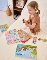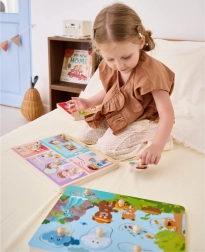 I puzzle colorati presentano diverse scene e suoni naturali che catturano immediatamente l’interesse dei bambini.