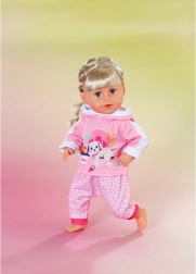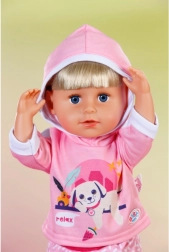 Questa tuta rosa è l’accessorio perfetto per il guardaroba delle bambole BABY born da 43 cm e per i BABY born Teddy. La felpa con la tenera stampa del cagnolino che riposa e i comodi pantaloni con delicata fantasia assicurano comfort in ogni avventura. Grazie al taglio studiato, l’abbigliamento si indossa e si toglie con facilitá.