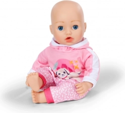 Adorabile tuta rosa per bambole BABY born da 43 cm che unisce comfort e stile. Il set include una morbida felpa con cappuccio con stampa di cagnolino e pantaloni coordinati a fantasia. Grazie ai polsini elastici e alla facilità di vestizione, è ideale per il gioco quotidiano e sviluppa fantasia e abilità di cura.