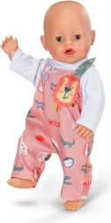 La tutina rosa con bretelle, i motivi allegri degli animali e la patch del leone stimolano la fantasia dei bambini e donano a ogni bambola uno stile unico.