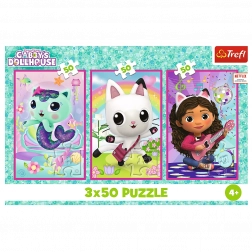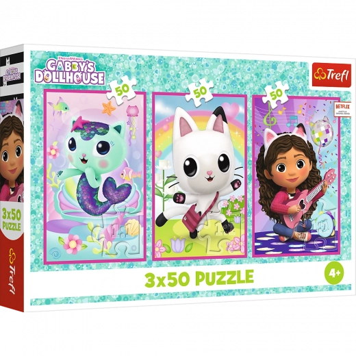 Puzzle 3x50 - Incontra Gabby e i suoi gattini è una divertente collezione ispirata alla serie La Casa delle Bambole di Gabby. Comporre il puzzle è non solo divertente, ma anche un modo per sviluppare la motricità fine e l'immaginazione.